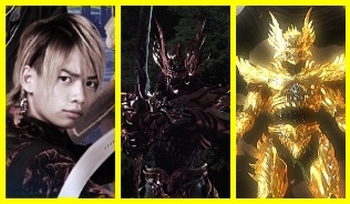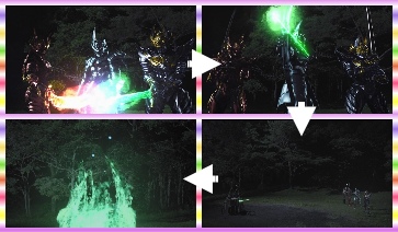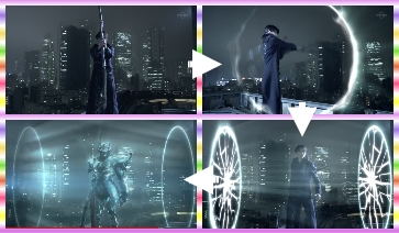 牙狼:舉起劍旋轉→打開圓形的入口→穿上鎧甲→變身完畢